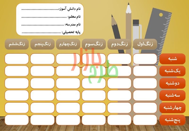 طرح فرمت خام برنامه هفتگی مدارس با تم بسیار زیبا با فرمت پاورپوینت PowerPoint 2024 می باشد که با امکان ویرایش کامل برای شما آماده شده است. در این فایل علاوه بر امکان تایپ برنامه و چاپ آن امکان تغییر گرافیک‌ها و سفارشی سازی فایل وجود دارد. همچنین در این طرح امکان درج مشخصات شامل نام دانش آموز، نام معلم، نام کلاس، نام مدرسه و پایه تحصیلی وجود دارد.