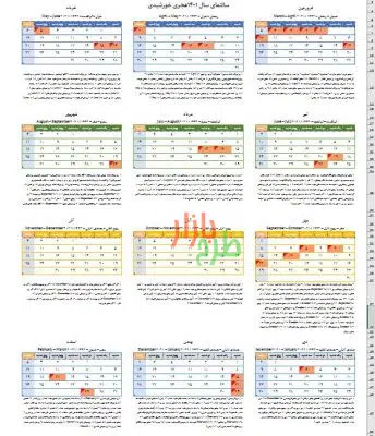 این تقویم بر اساس تاریخ شمسی طراحی شده است.