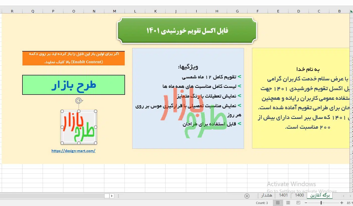 ویژگیهای فایل ورد و اکسل تقویم شمسی ۱۴۰۱: