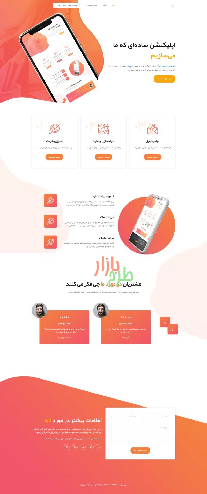 در این طرح قالب صفحه فرود HTML فارسی لاوا را برای شما آماده کرده ایم که مناسب طراحی صفحات فرود برای معرفی محصولات، کمپین های تبلیغاتی،جشنواره های فروش و … می باشد.