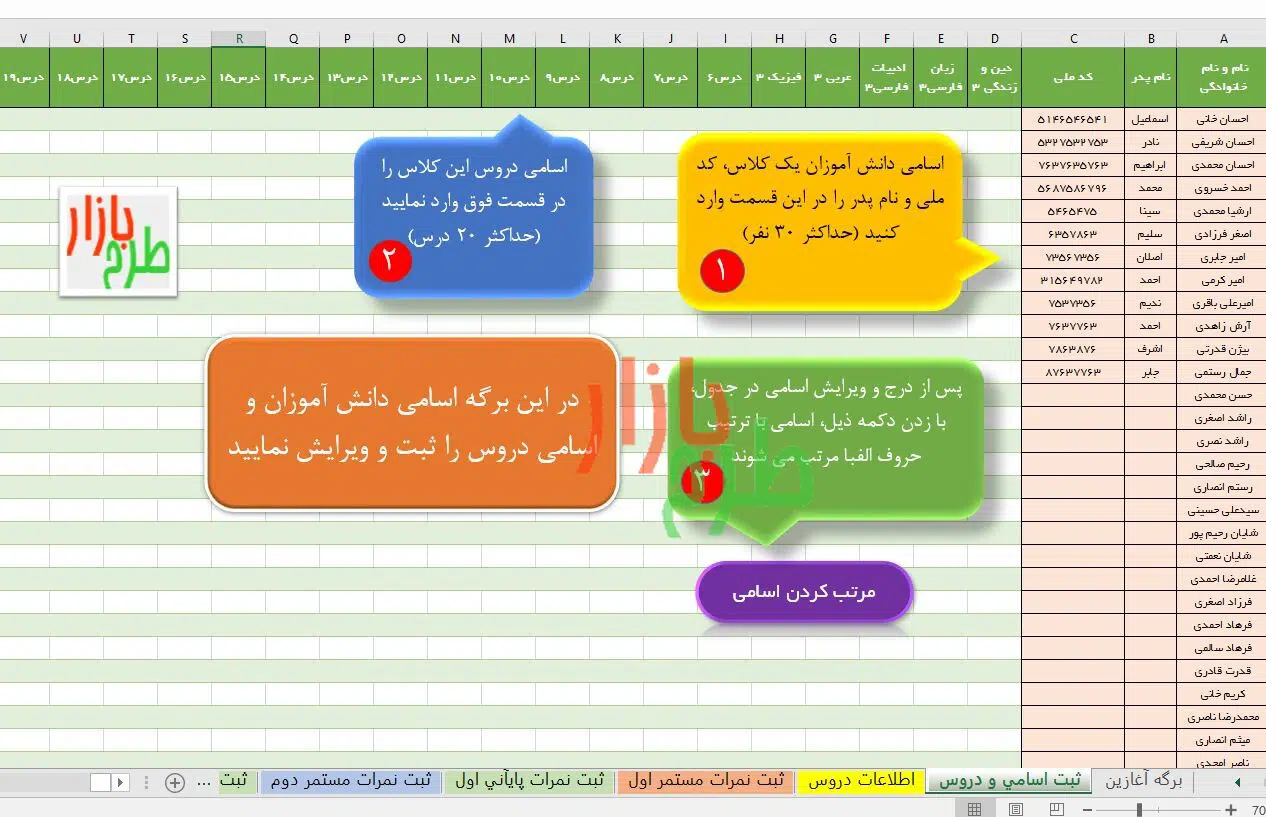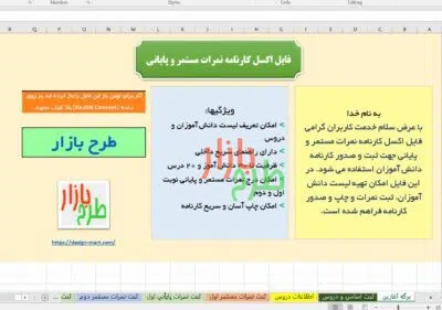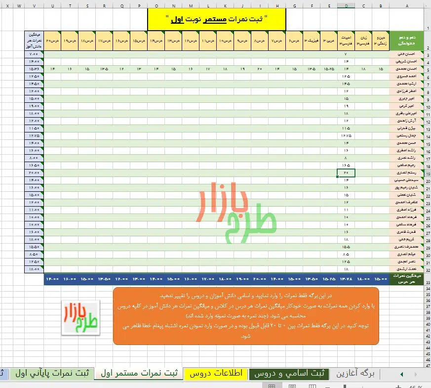 ویژگیهای کلیدی نسخه پیشرفته فایل اکسل نمرات مستمر و پایانی طرح بازار: